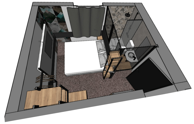 Ce projet consistait à rénover 21 chambres d’hôtel jumelées de 11m2.