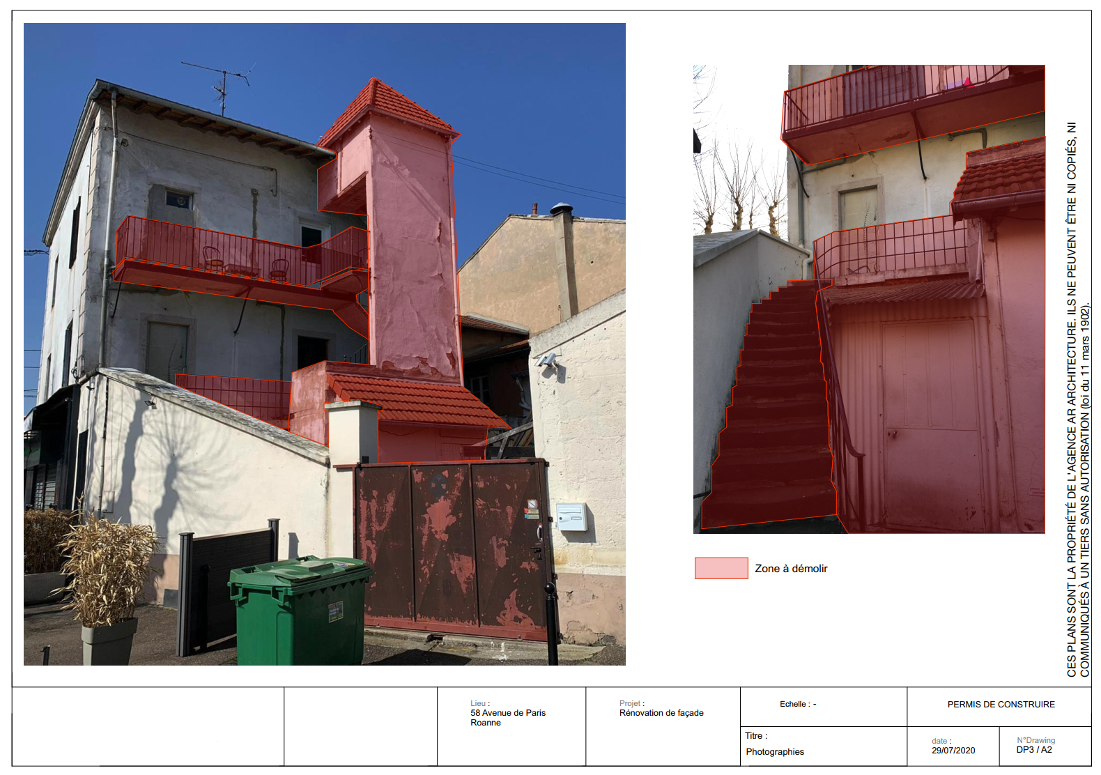 Ma mission était d’organiser la démolition de la tour ayant des faiblesses structurelles et de poser un escalier extérieur desservant les deux niveaux. Ce projet s’est réalisé en collaboration avec un bureau d’étude structure.